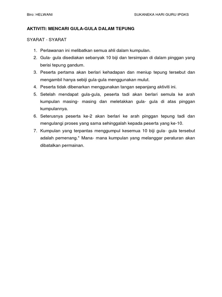 Peraturan Permainan Tiup Tepung Pdf